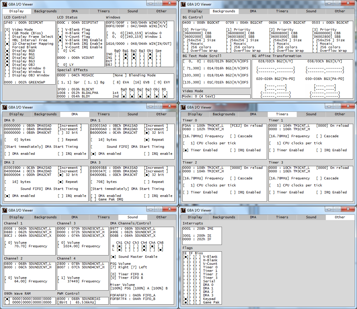 This time I’ve included GB Camera emulation again. In GiiBiiAdvance 0.1.0 was removed (GiiBii had it). This time I’ve documented it all, and I’m planning on doing some reverse engineering on the real hardware (I’ve bought a few cartridges just in case I break one). For now, I’ve only used the GB Camera software to see how it works, and I’ve managed to emulate almost everything (contrast, dithering and brightness). It is quite complicated to do emulate brightness because it depends on the webcam and on the GB Camera software, so it changes weirdly sometimes. The documentation is in “/docs/” folder in GitHub.